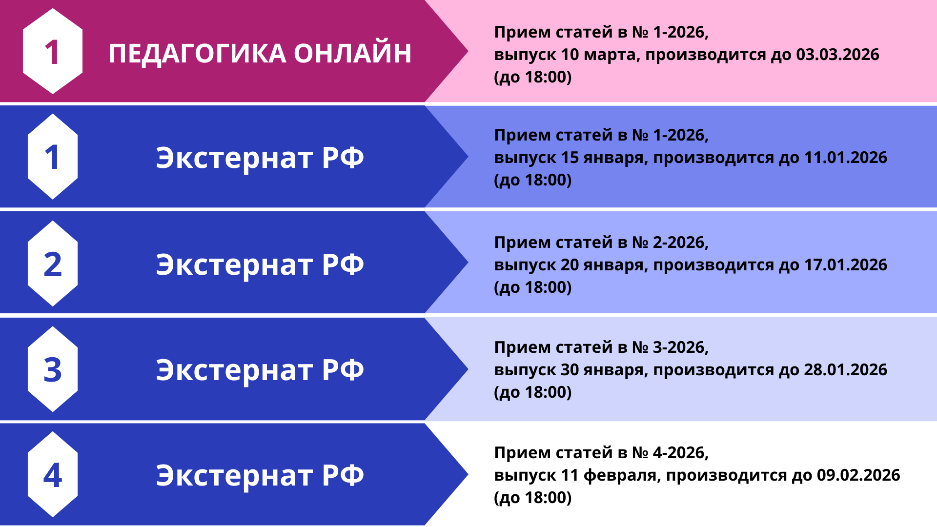 - Прием статей в номер № 2-2026, выпуск 20 января, производится до 17.01.2026 (до 18:00).